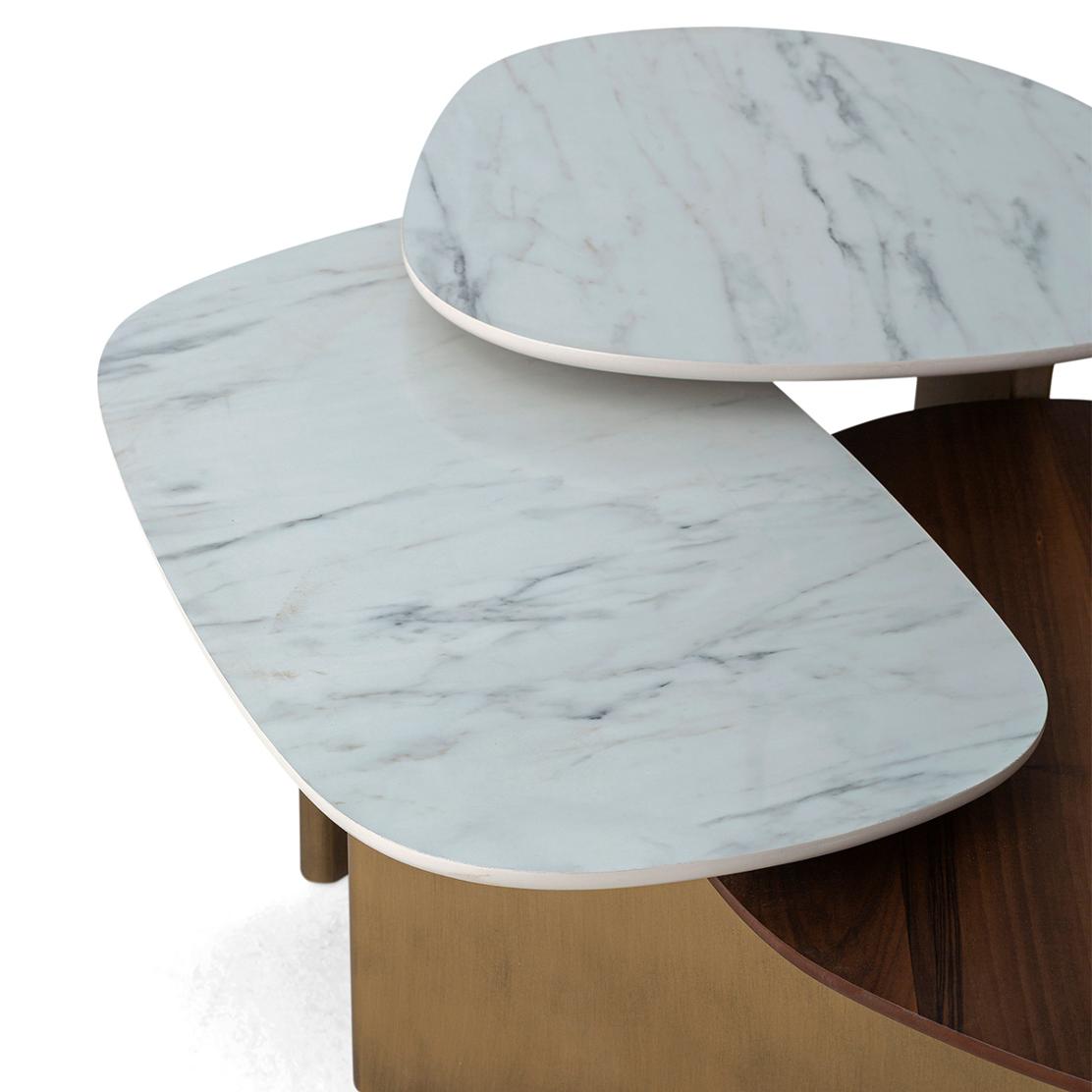 Открийте холна маса TN-1017, която преобразява пространството с елегантния си дизайн. Комбинацията от естествен фурнир орех и луксозно мраморно покритие създава хармония, внасяйки топлина и съвременна изтънченост във Вашия хол. Насладете се на уникалност и качество.