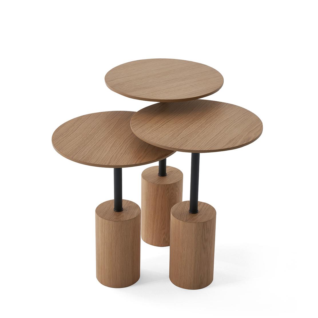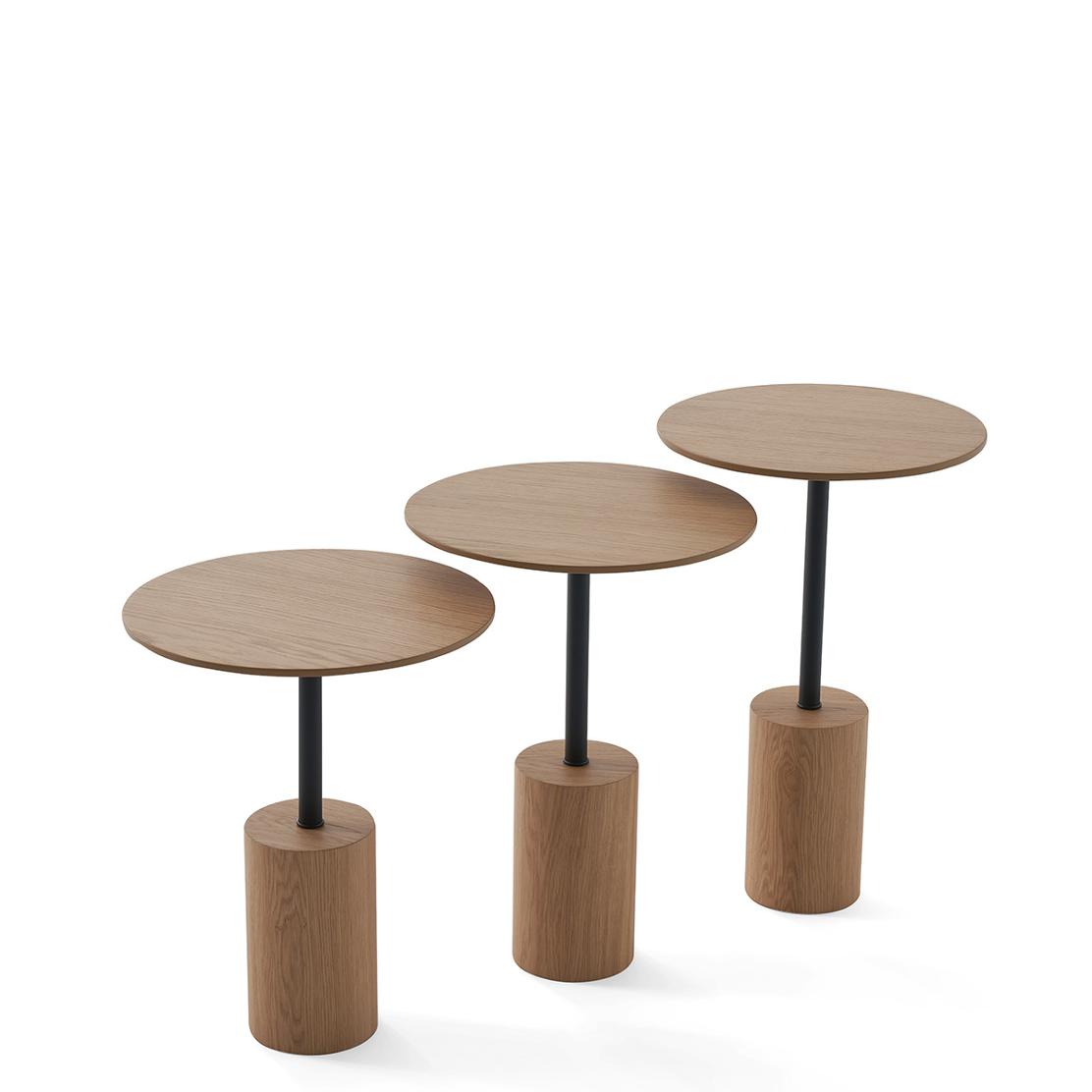 TN-104 – комплект от три елегантни холни маси, които съчетават модерен дизайн и функционалност. Със своята топла дървесна повърхност и стилни цилиндрични основи, те създават уютна и изискана атмосфера във всяко пространство. Различните височини на масите предлагат гъвкавост при подреждане – могат да се използват заедно като акцентен сет или поотделно според нуждите на интериора. Идеални както за съвременни, така и за класически обзаведени помещения, тези маси ще внесат хармония и практичност във вашия дом.
