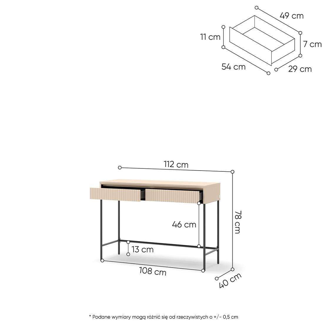 • Цвят: Пясъчно бежово (корпус, чекмеджета), тъмен метал (крака)