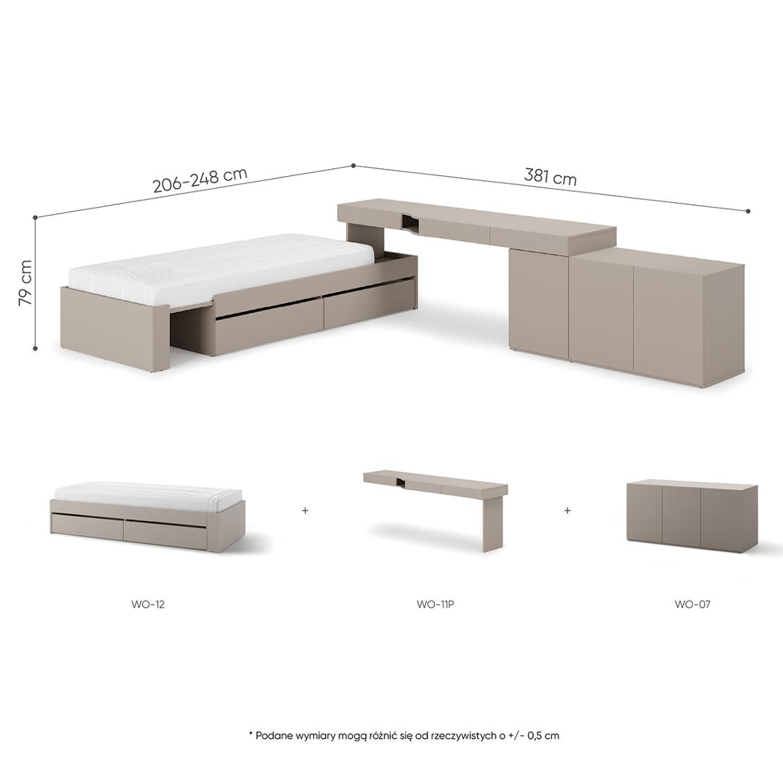 • Функции: Подматрачни чекмеджета на леглото, място за съхранение в шкафа и бюрото.
