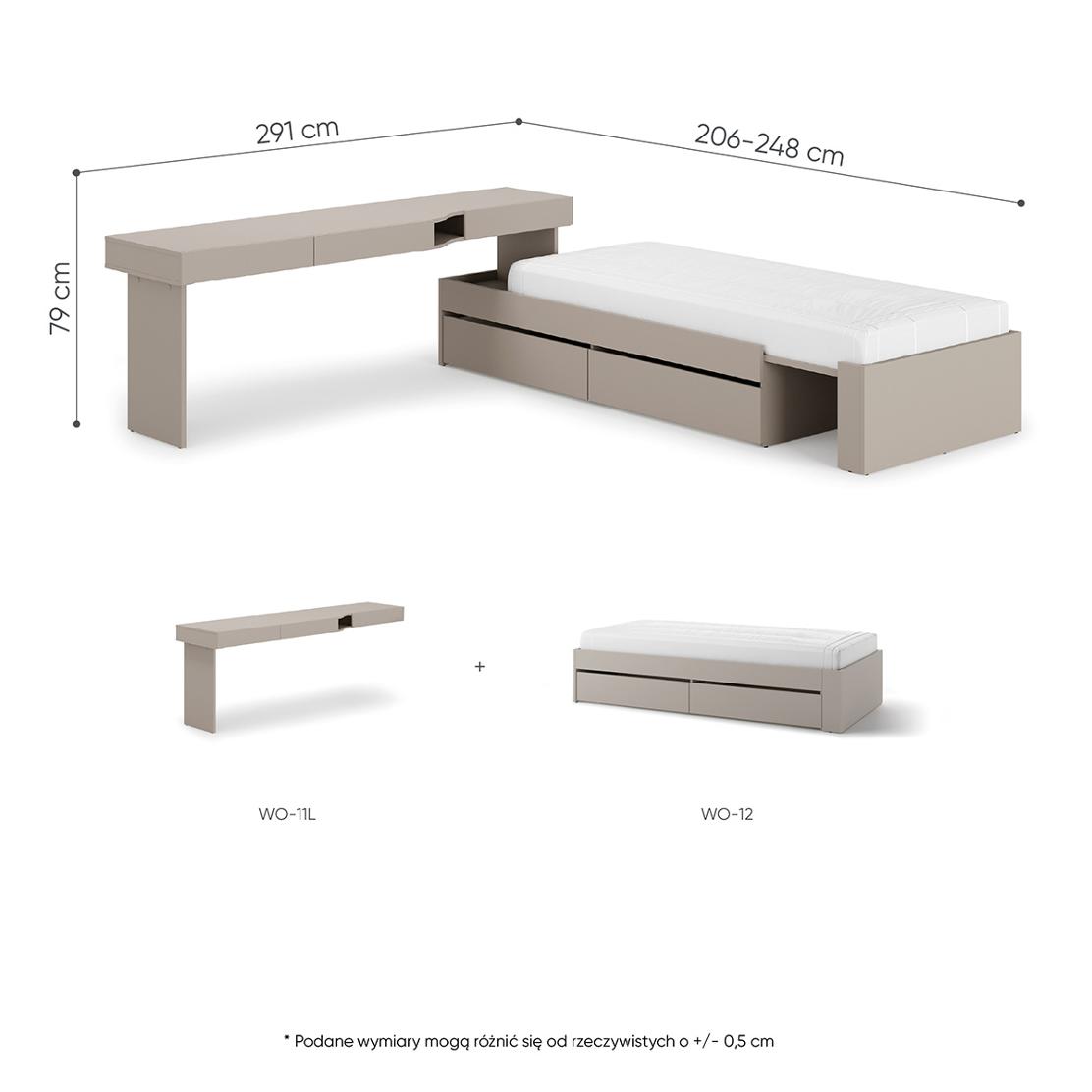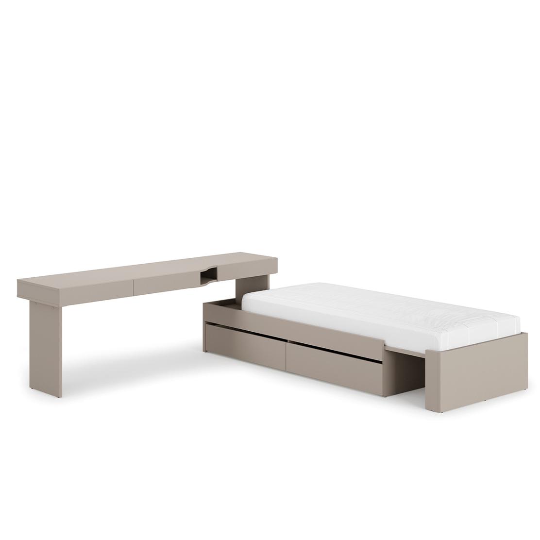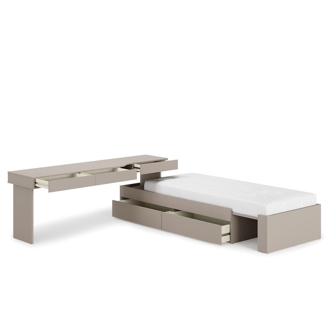 Мултифункционален комплект легло и бюро с чекмеджета КАМКО – стил и практичност в сива глина!