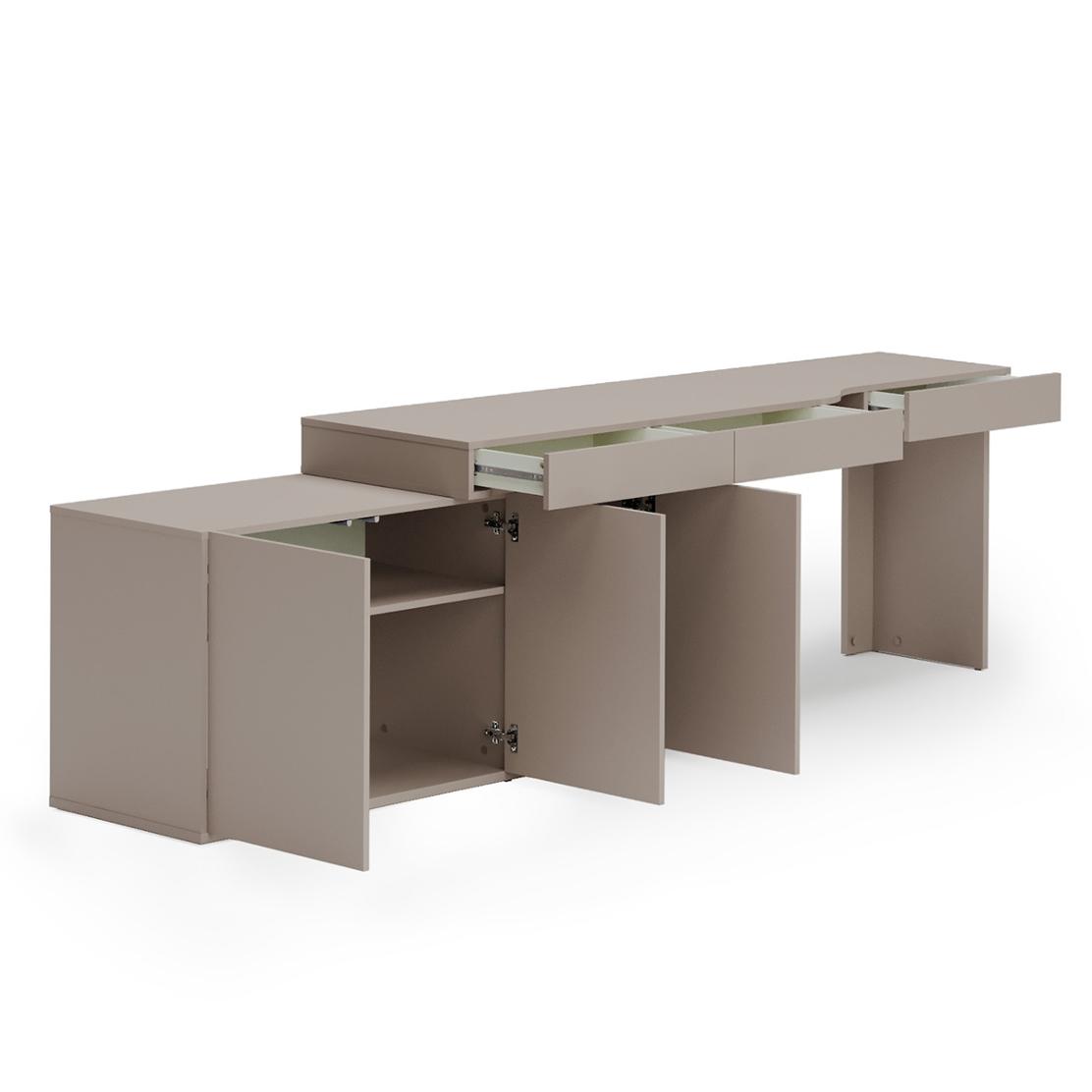 Съчетавайки изтънчен дизайн с практичност, този комплект гарантира дълготрайна употреба. Плавните механизми на чекмеджетата осигуряват комфорт, докато качественото ПДЧ в цвят сива глина придава усещане за лукс и лесна поддръжка.