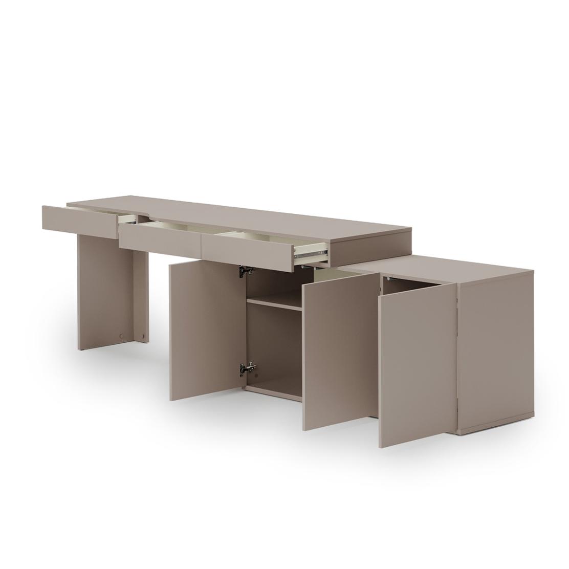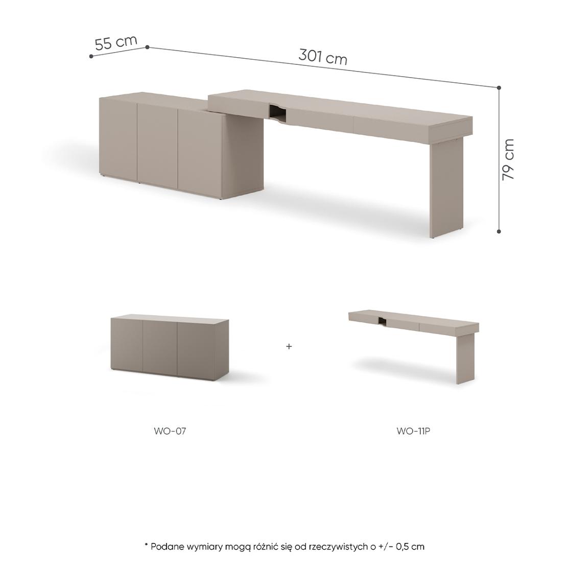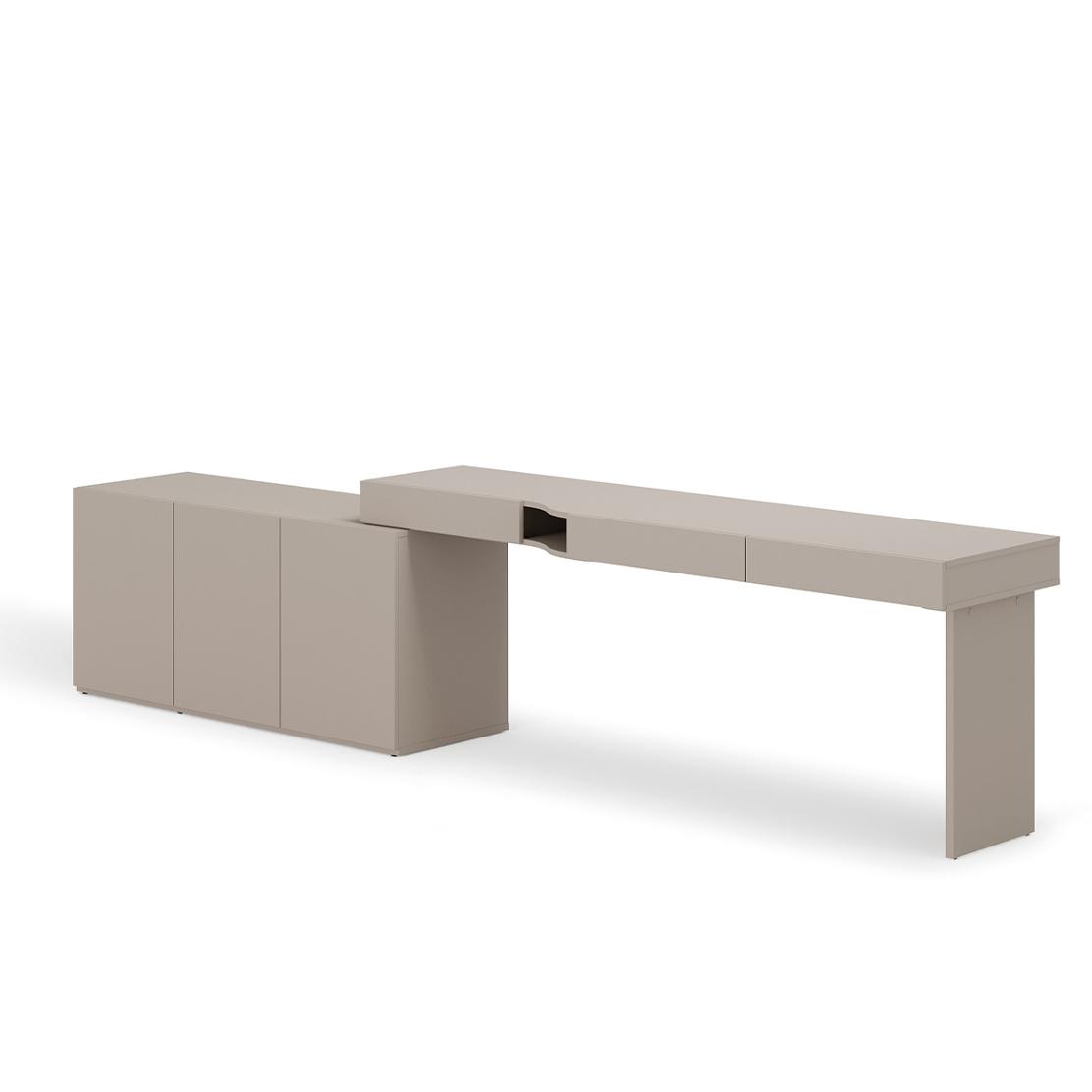 • Функционалности: Бюро с 3 чекмеджета с плавно затваряне, Шкаф с 3 врати (1 рафт зад двете врати)