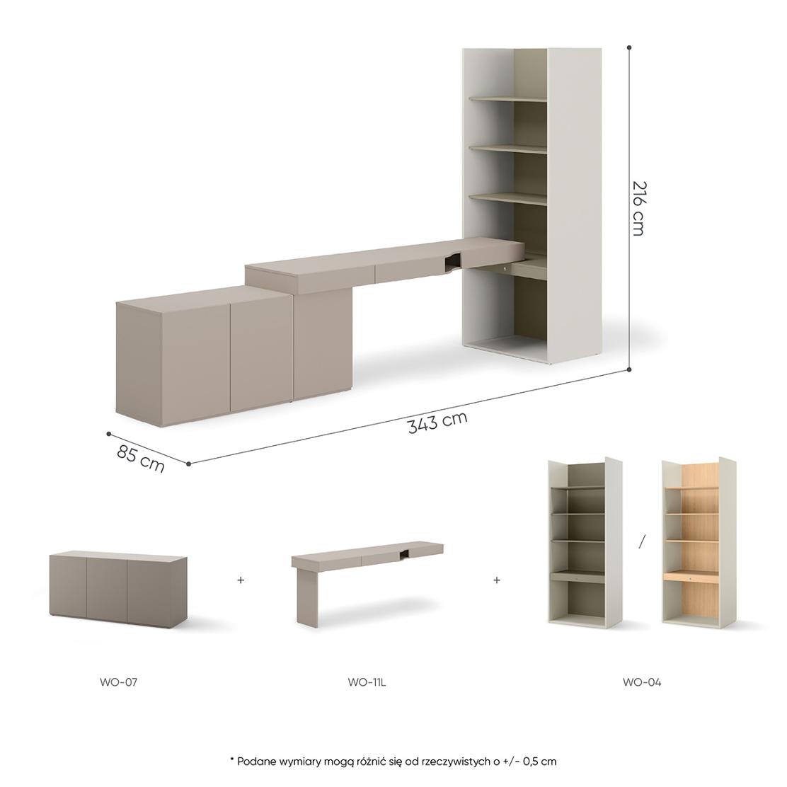 WOOW Комплект: Функционално бюро, шкаф с 3 врати и етажерка – елегантно решение за организация.