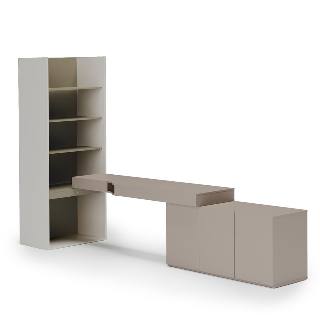 • Оптимална организация с шкаф с три врати, просторно бюро и отворена етажерка.