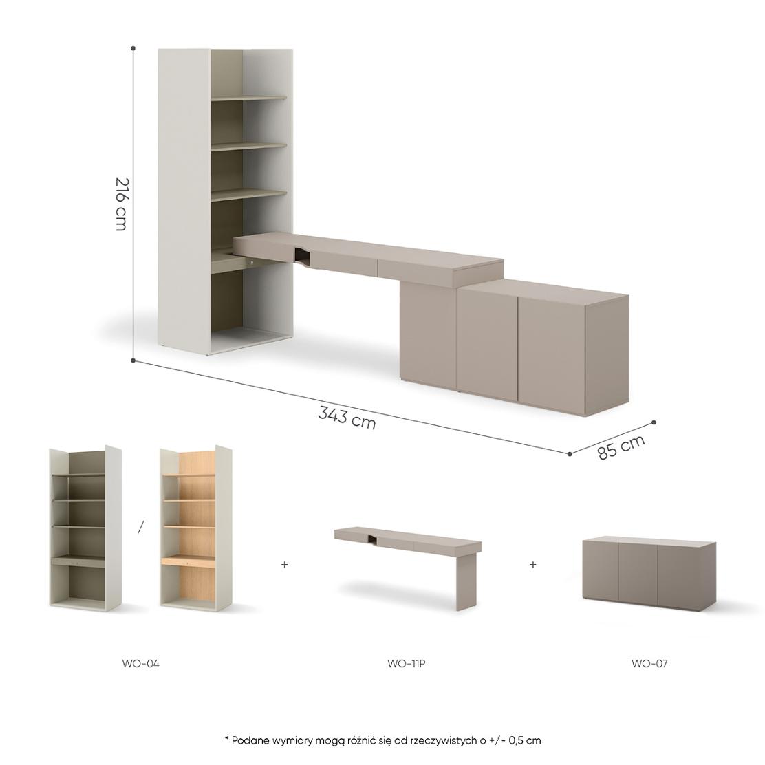 WOOW Комплект: Функционално бюро, шкаф с 3 врати и етажерка – елегантно решение за организация.