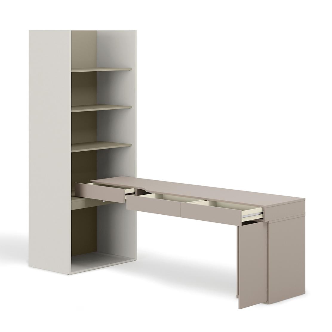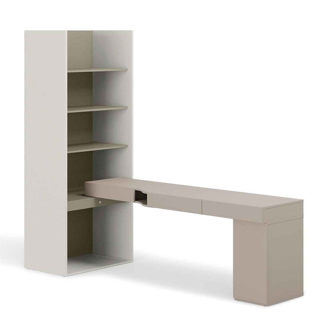 Комплект WOOW: Компактно бюро с етажерка в сива глина и евкалипт – идеално за модерен дом.