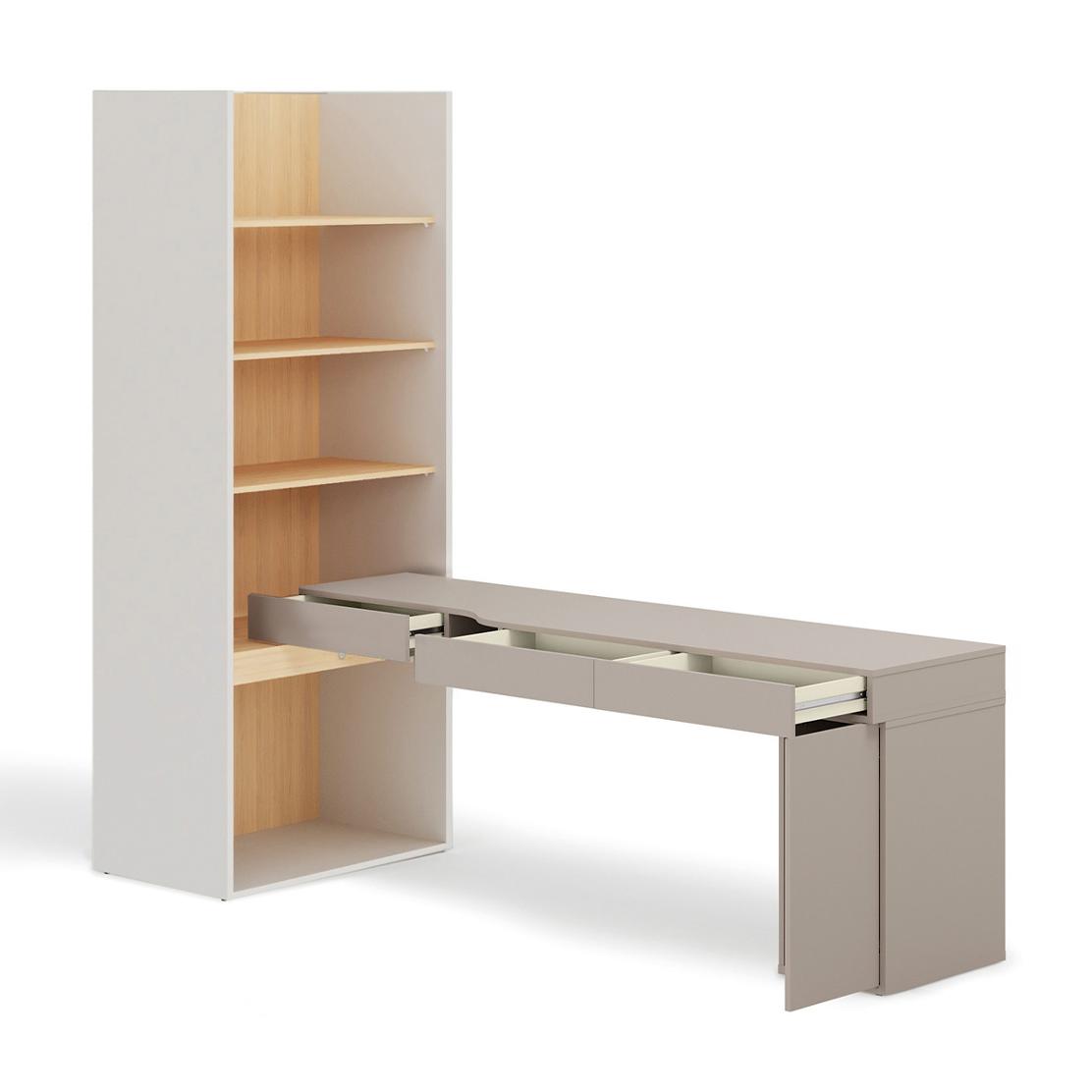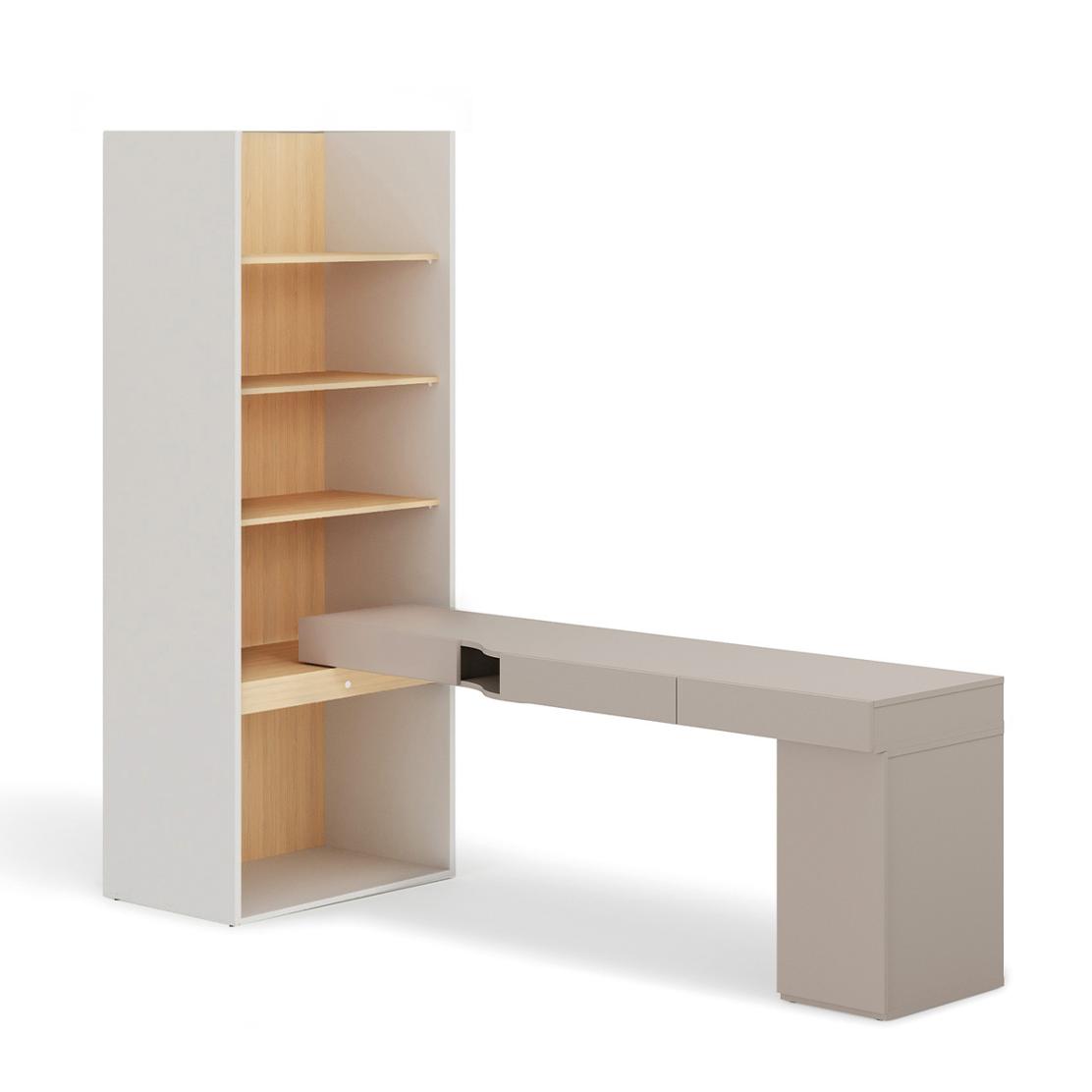 Комплект WOOW: Компактно бюро с етажерка в сива глина и Винченца светъл дъб – идеално за модерен дом.