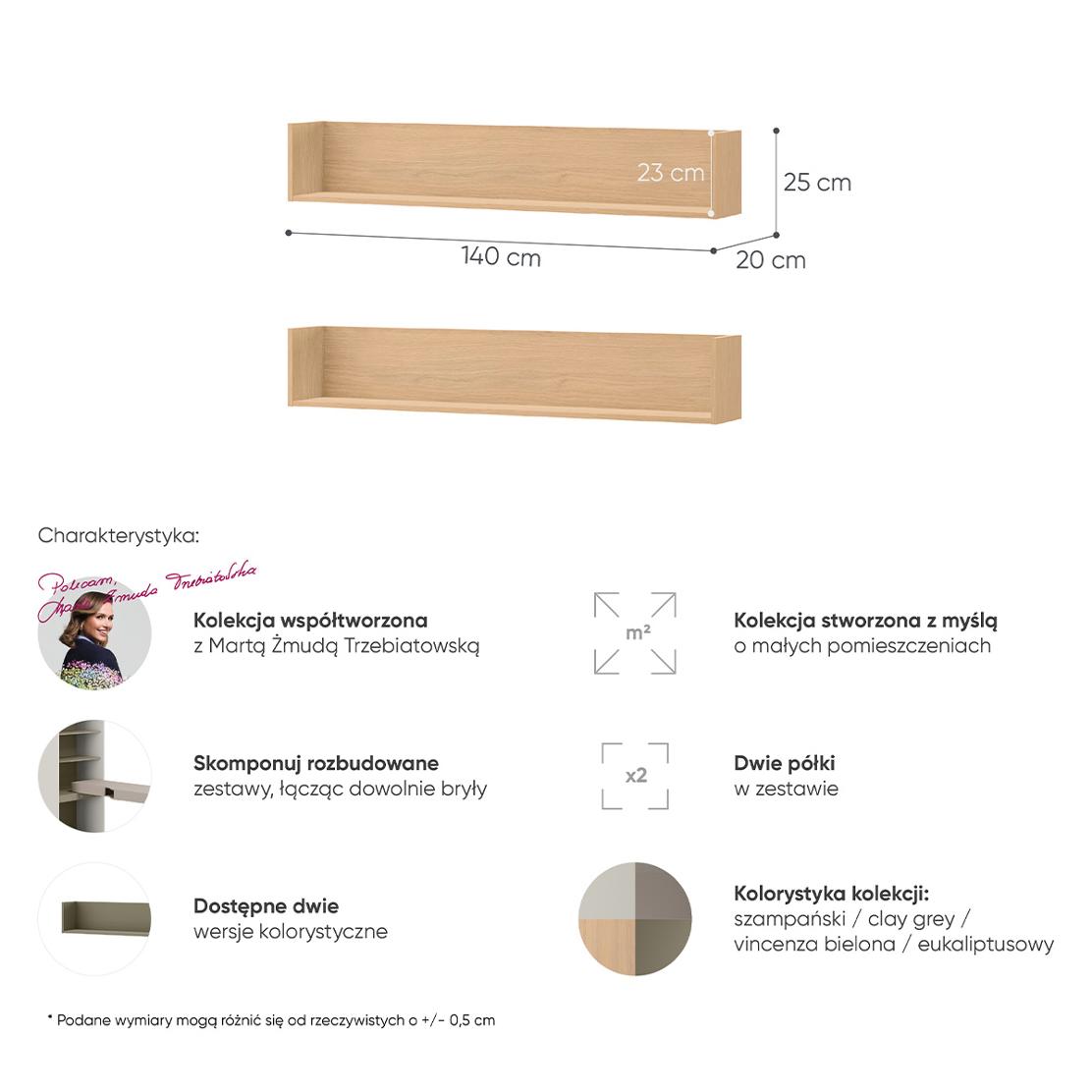 Открийте перфектния баланс между стил и практичност с полица WOOW от KAMKO. Изработена от висококачествено ПДЧ в нюанс Винченца дъб, тя добавя естествена елегантност и топлина към всяко помещение. Идеална за създаване на уютни кътчета с любими предмети, тази полица е едновременно красива и функционална.