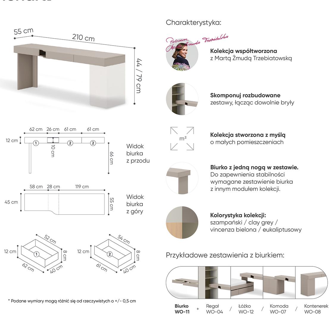 - За да запазите красотата на вашето бюро WOOW, редовно почиствайте повърхностите с мека, леко влажна кърпа.