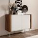 Серията включва различни елементи – скринове, етажерки, ТВ модули – които предлагат практично разпределение с рафтове, врати и чекмеджета, осигуряващи достатъчно място за съхранение. Металните крачета допълват визията с модерен акцент и улесняват поддръжката.
